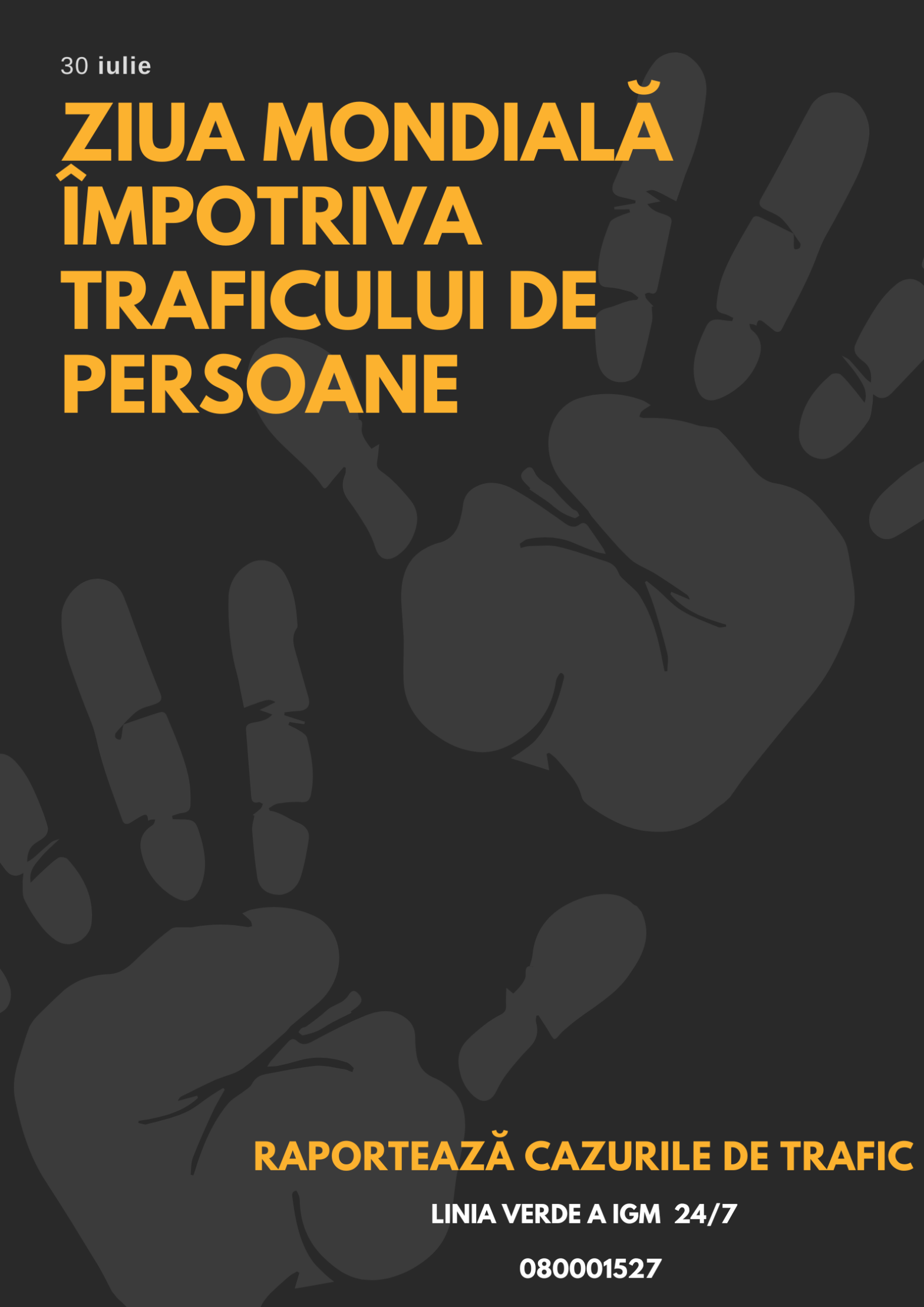 Astăzi, 30 iulie marcăm Ziua mondială împotriva traficului de persoane, instituită de Adunarea Generală a Organizației Națiunilor Unite în anul 2013. Anul curent sloganul aprobat de ONU, în contextul acestei date, este: „Nici un copil să nu fie lăsat în urmă în lupta împotriva traficului de ființe umane”. În acest context, ofițerii Centrelor de integrare… Continuă lectura IGM marchează Ziua mondială împotriva traficului de persoane