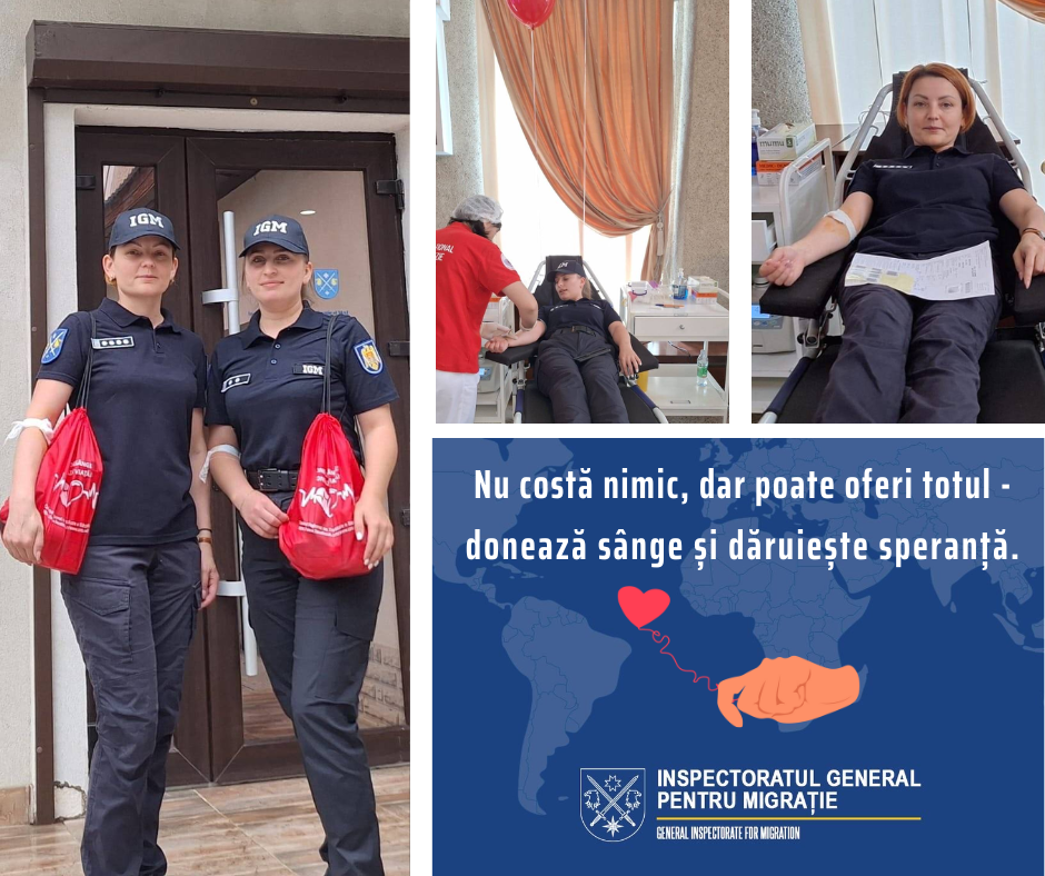 Cu prilejul Zilei Mondiale a Donatorului de Sânge, Inspectoratul General pentru Migrație (IGM) s-a alăturat campaniei naționale de donare de sânge, demonstrând o implicare activă și o responsabilitate socială exemplară. Campania, inițiată la 14 iunie curent, a reunit mai mulți angajați ai IGM din diverse subdiviziuni, care au răspuns cu entuziasm apelului de a contribui… Continuă lectura IGM se alătură campaniei naționale de donare de sânge