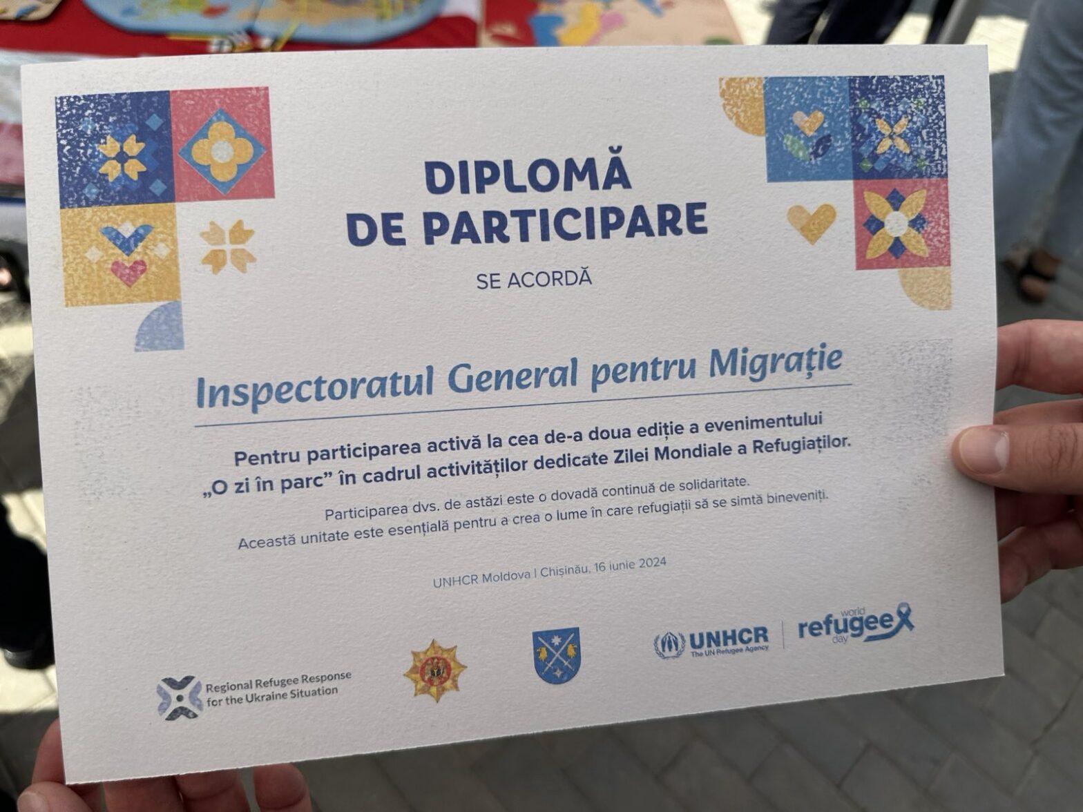 Inspectoratul General pentru Migrație (IGM) exprimă satisfacția deplină cu privire la desfășurarea cu succes a evenimentului „Casa Mare” – O zi în parc de Ziua Mondială a Refugiaților 2024, organizat sub egida Înaltului Comisariat al Națiunilor Unite pentru Refugiați (UNHCR-Moldova), în parteneriat cu IGM. „Casa Mare”, amenajată în Parcul Alunelul din Chișinău, a reunit la… Continuă lectura IGM salută succesul evenimentului „Casa Mare” dedicat Zilei Mondiale a Refugiaților 2024