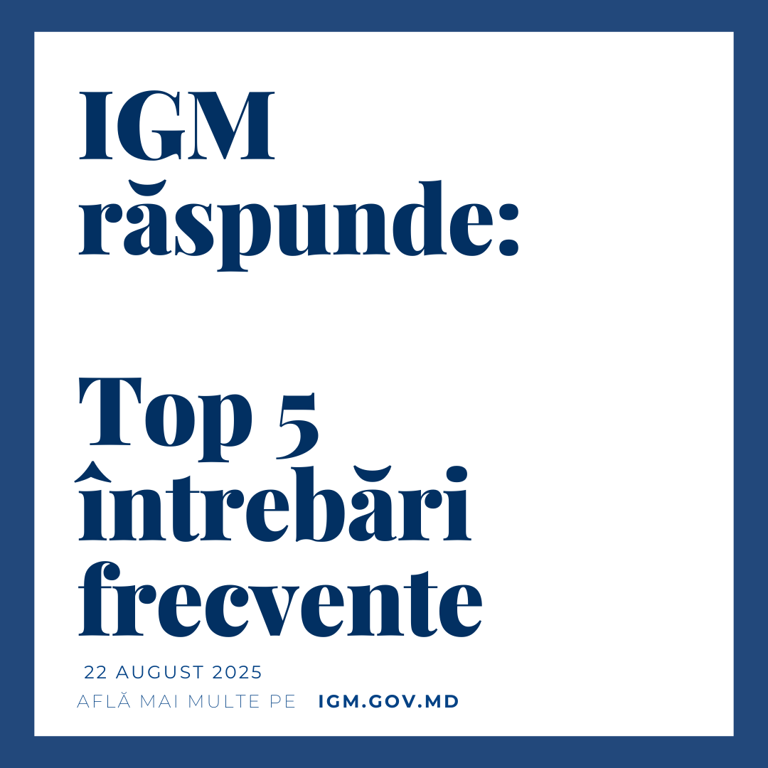 Inspectoratul General pentru Migrație (IGM) răspunde la top 5 întrebări frecvente adresate de străini la Linia Verde a IGM în ultima perioadă. Vom răspunde cu regularitate și vom face claritate la subiectele care preocupă beneficiarii IGM. Potrivit art. 28, alin. (7) al Legii nr. 200/2010 privind regimul străinilor în Republica Moldova, autoritatea competentă pentru străini… Continuă lectura IGM răspunde: Top 5 întrebări frecvente