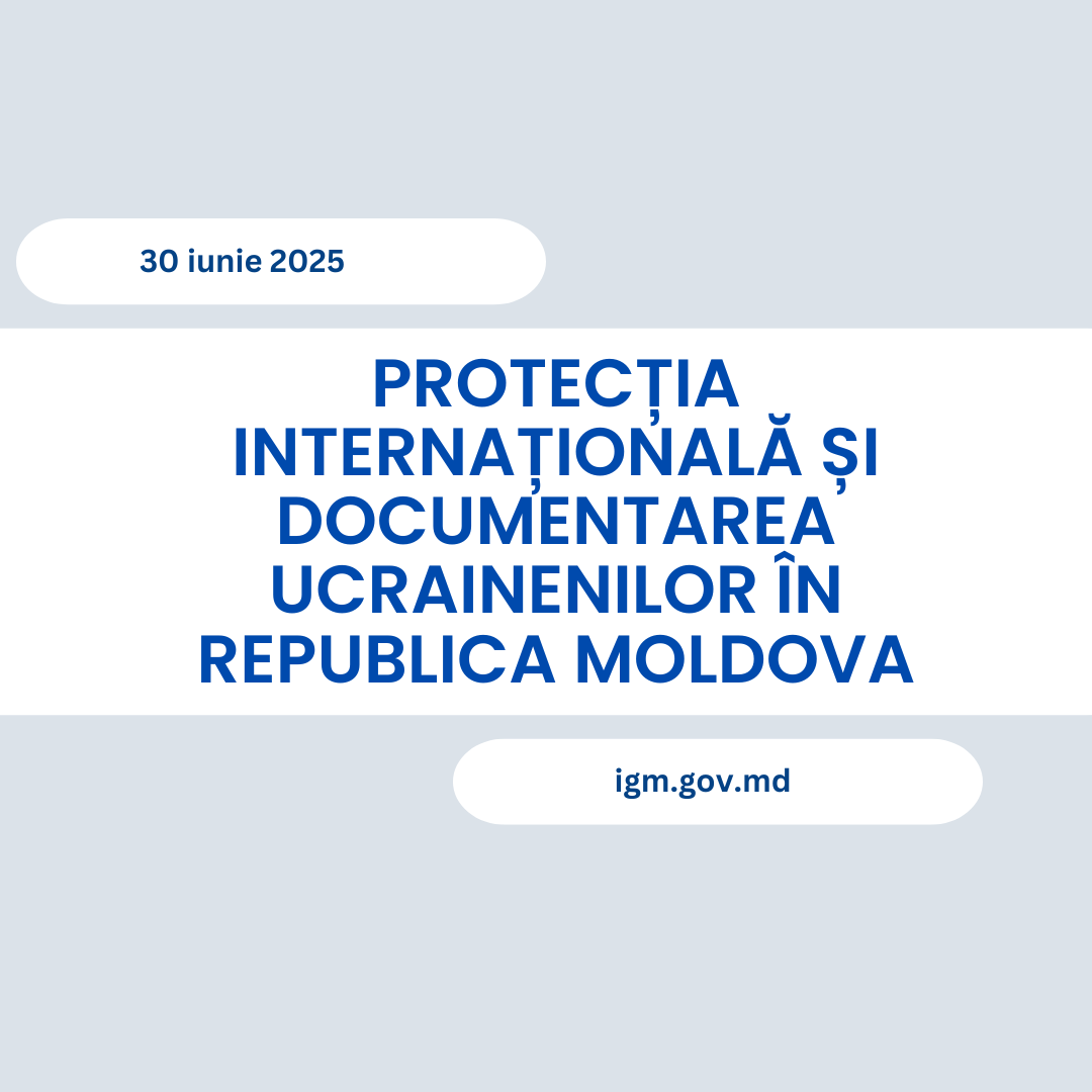 Inspectoratul General pentru Migrație prezintă situația actualizată la zi a persoanelor strămutate din Ucraina și a cetățenilor ucraineni stabiliți în Republica Moldova. Protecția temporară. Evidențe înregistrate la 30 iunie 2025. Permise de ședere. Evidențe înregistrate la 30 iunie 2025. Sistemul de azil. Evidențe înregistrate la 30 iunie 2025. Dobândirea cetățeniei Republicii Moldova de către ucraineni în perioada 24… Continuă lectura Protecția internațională și documentarea ucrainenilor în Republica Moldova