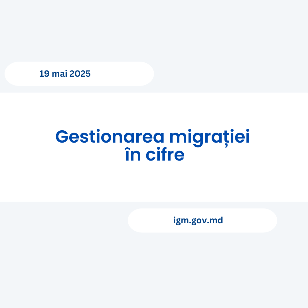 În perioada 12 – 19 mai 2025 Inspectoratul General pentru Migrație a înregistrat următorii indicatori: Dosare depuse pe domeniul admisiei și imigrării străinilor – 562; Decizii de acordare/prelungire a dreptului de ședere – 171; Acte/decizii emise după genuri de activitate – 421. Cereri de azil depuse – 74; Dispoziții de încetare a procedurii de azil… Continuă lectura Gestionarea migrației în cifre