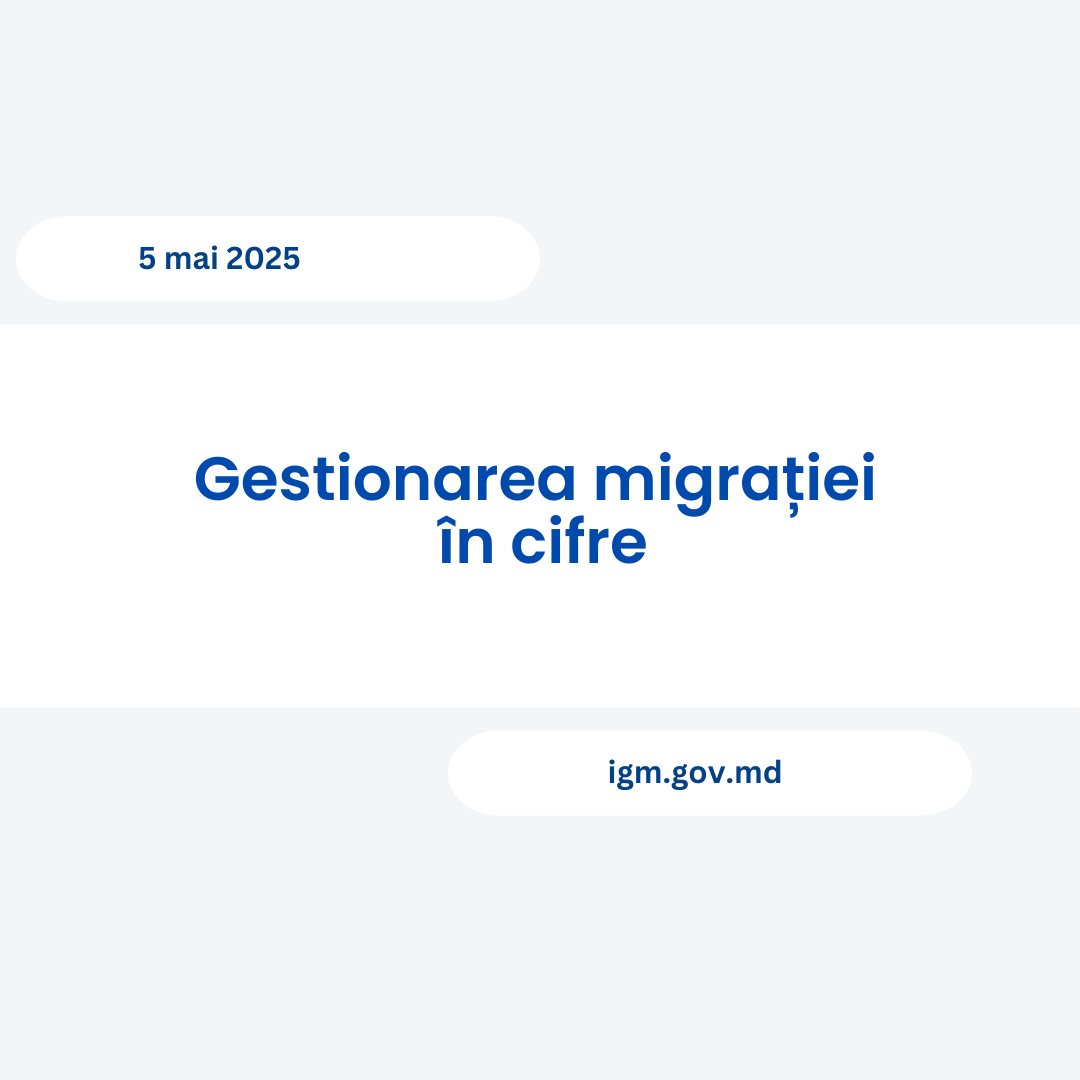 În perioada 14 – 22 aprilie 2025 Inspectoratul General pentru Migrație a înregistrat următorii indicatori: Dosare depuse pe domeniul admisiei și imigrării străinilor – 693; Decizii de acordare/prelungire a dreptului de ședere- 239; Permise de ședere eliberate- 215. Cereri de azil depuse- 82; Dispoziții de încetare a procedurii de azil- 31. Documente eliberate beneficiarilor de protecție… Continuă lectura Gestionarea migrației în cifre