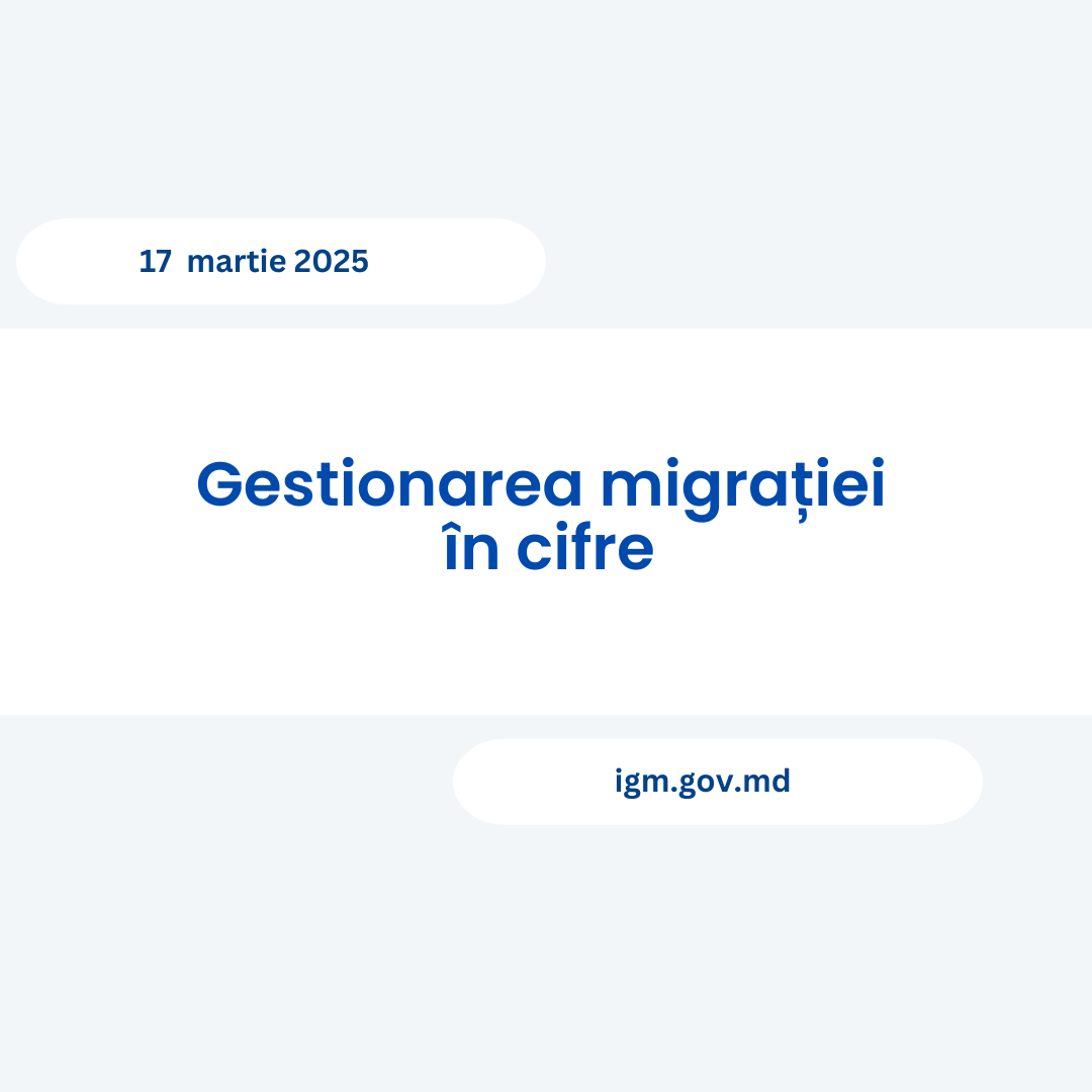 În perioada 10 – 16 martie 2025 Inspectoratul General pentru Migrație a înregistrat următorii indicatori: Dosare depuse pe domeniul admisiei și imigrării străinilor – 554; Decizii de acordare/prelungire a dreptului de ședere- 153; Permise de ședere eliberate- 219. Cereri de azil depuse- 55; Dispoziții de încetare a procedurii de azil- 51. Documente eliberate beneficiarilor de protecție… Continuă lectura Gestionarea migrației în cifre
