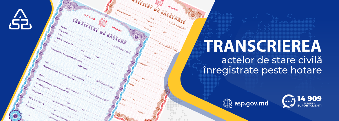 Cetăţenii Republicii Moldova care au înregistrat acte de stare civilă la organele competente ale ţărilor străine, au obligaţia să declare transcrierea acestora, în termen de 6 luni de la întoarcerea în ţară sau de la primirea din străinătate a certificatului de stare civilă ori a copiei sau extrasului de pe actul de stare civilă.