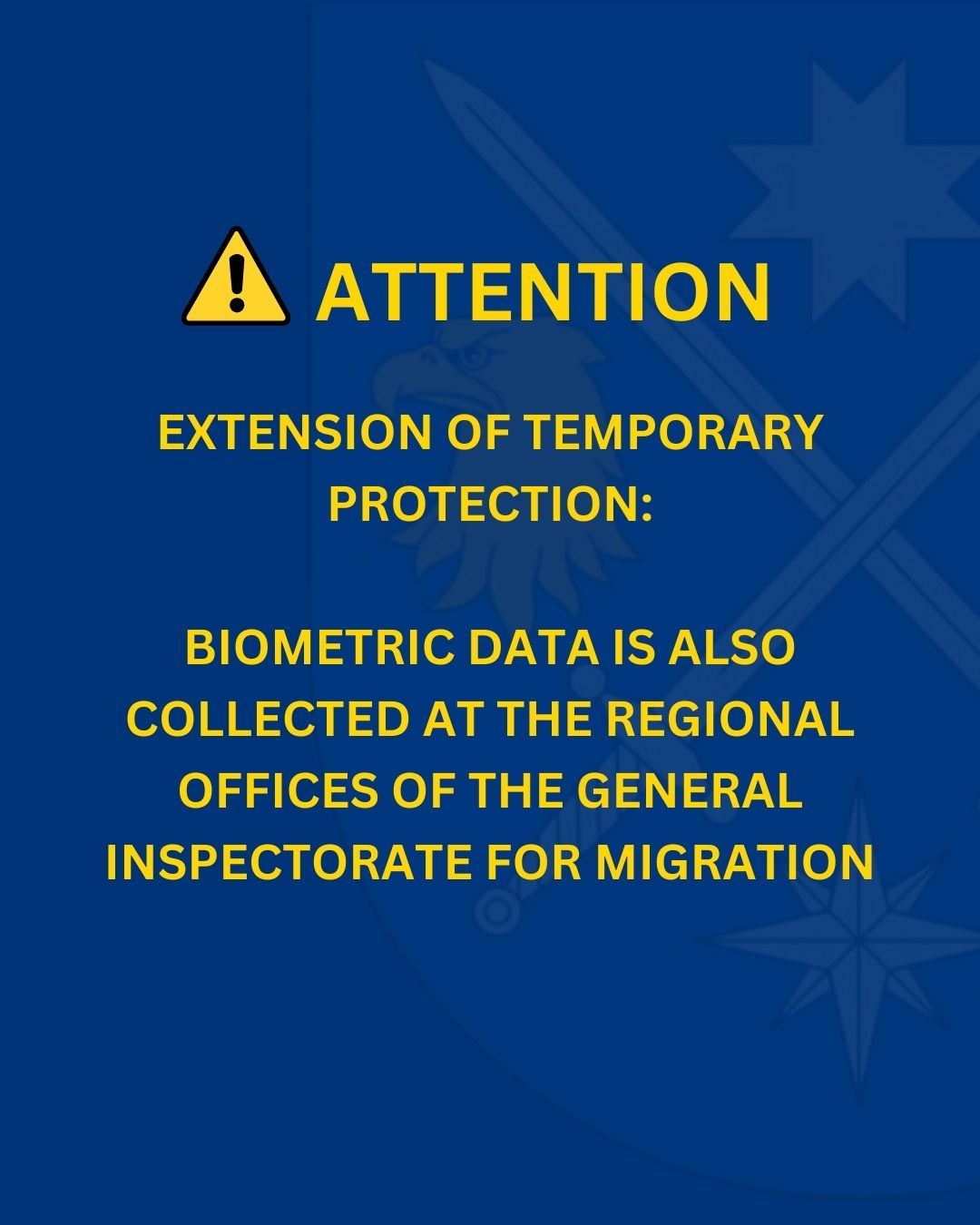 The General Inspectorate for Migration (GIM) informs that, to avoid queues and long waiting times, beneficiaries of temporary protection who have requested its extension and need to appear with minors for biometric data collection can also schedule appointments at the territorial offices of GIM through the administrative procedure. Important recommendation:When filling out the application for… Continue reading Collection of biometric data for extending temporary protection – also at GIM offices in the regions