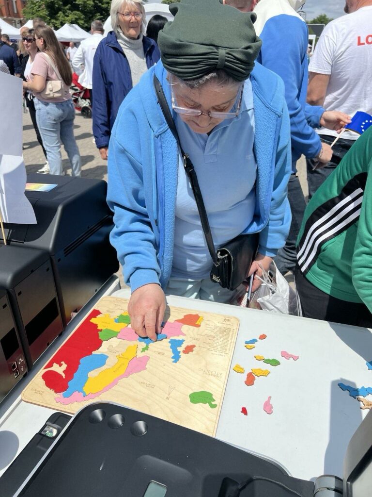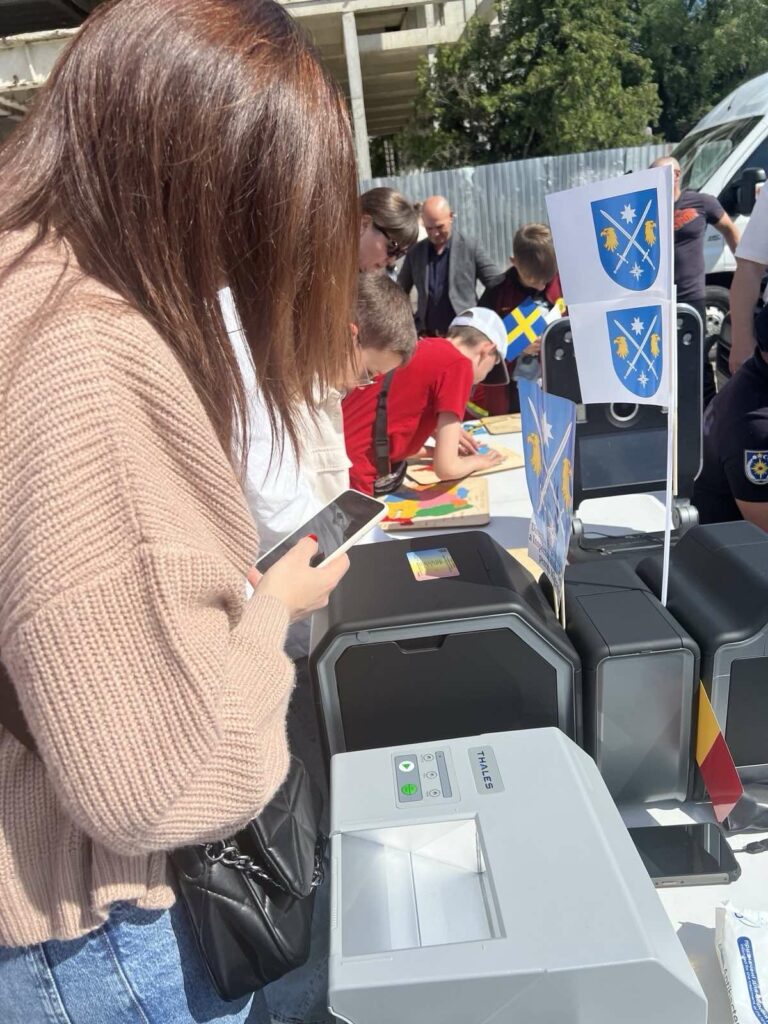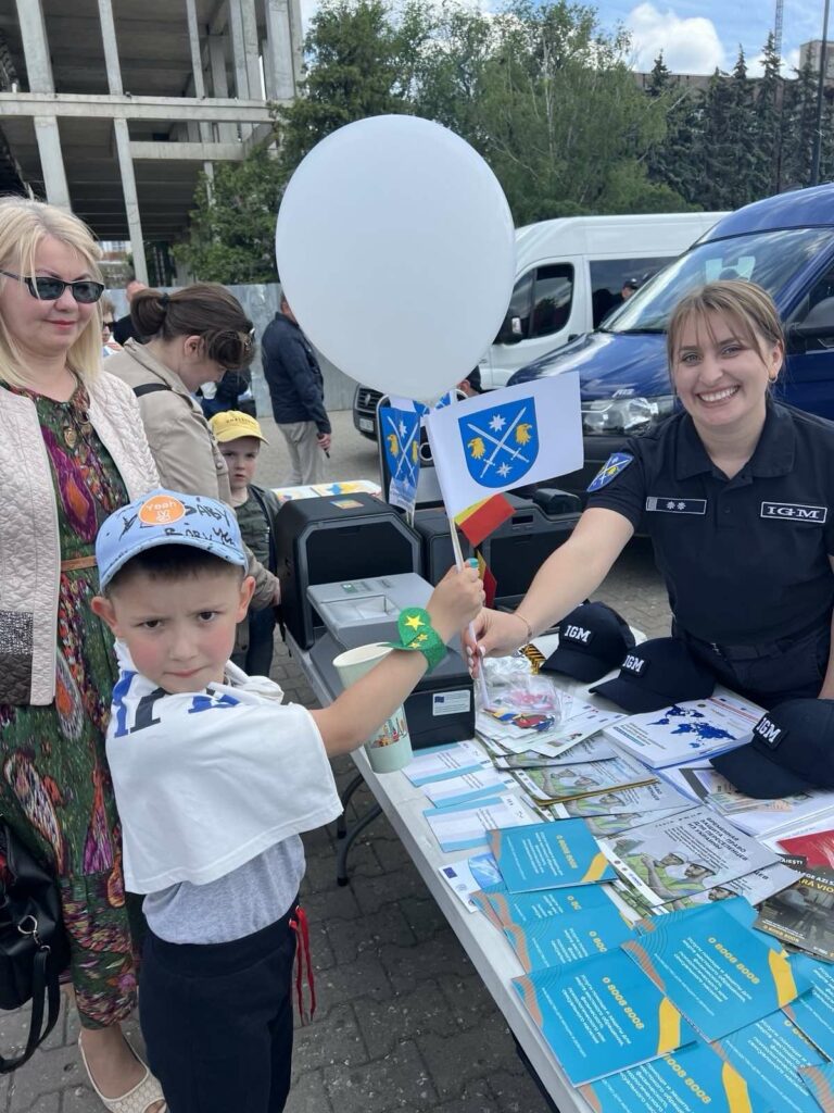 We are in dialogue with citizens, we talk about peace, democracy, free movement and free speech. We discuss European values that we all value together. During the event, GIM officers present to the public the technique used by the Mobile Team while documenting the beneficiaries of temporary protection, passport readers and document templates issued by GIM for foreigners staying legally on the territory of the Republic of Moldova.