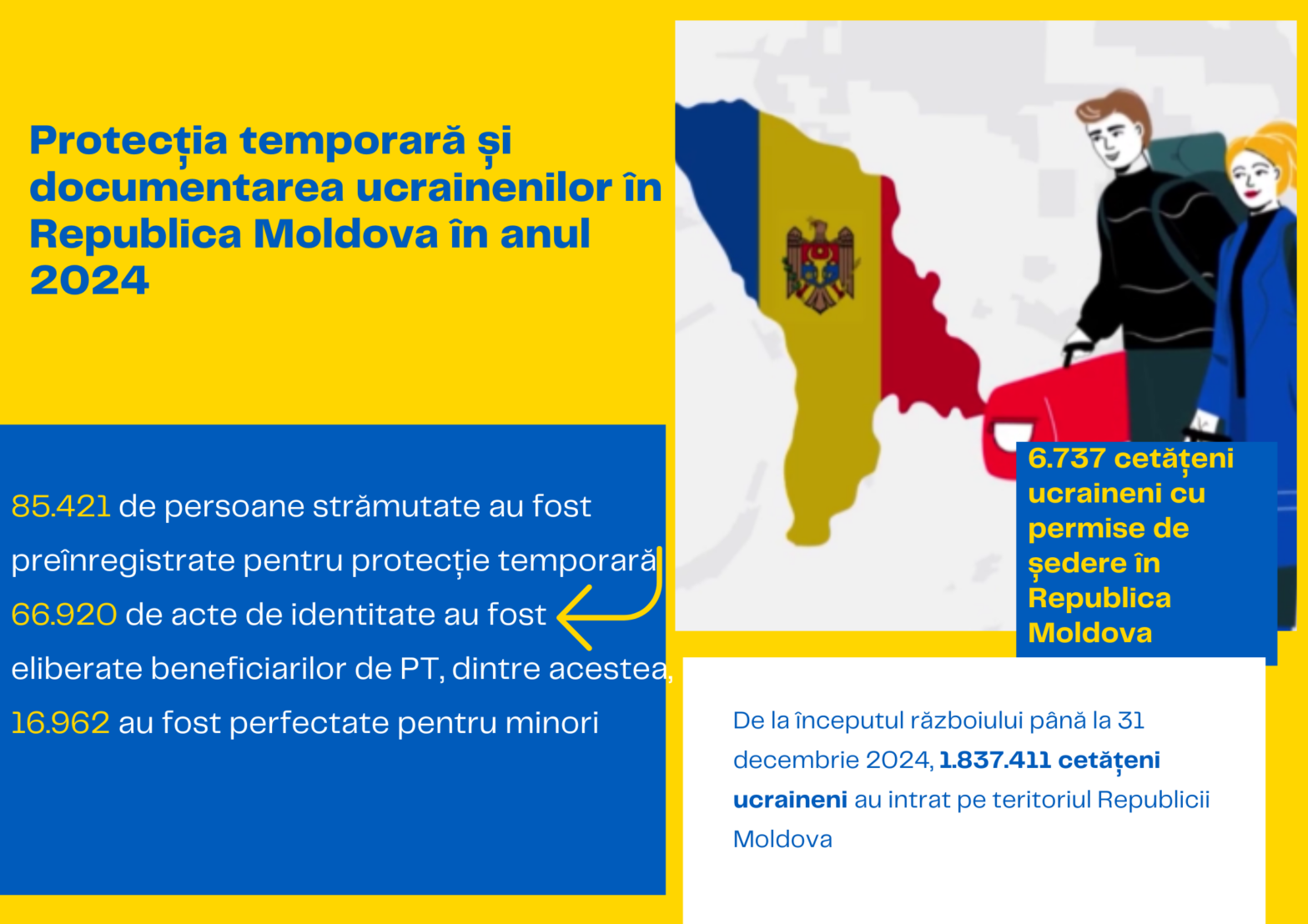 Republica Moldova continuă să joace un rol crucial în gestionarea crizei umanitare generate de războiul din Ucraina. Începând cu 2022, țara noastră a devenit un refugiu pentru sute de mii de cetățeni ucraineni, iar protecția temporară oferită de autoritățile moldovenești a fost esențială în asigurarea unei șederi sigure și legale pentru aceștia. Inspectoratul General pentru… Читать далее Protecția Temporară: prioritate pentru Inspectoratul General pentru Migrație în anul 2025