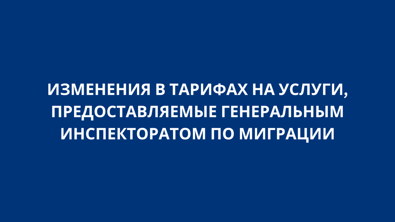Изменения в тарифах на услуги, предоставляемые Генеральным Инспекторатом по Миграции